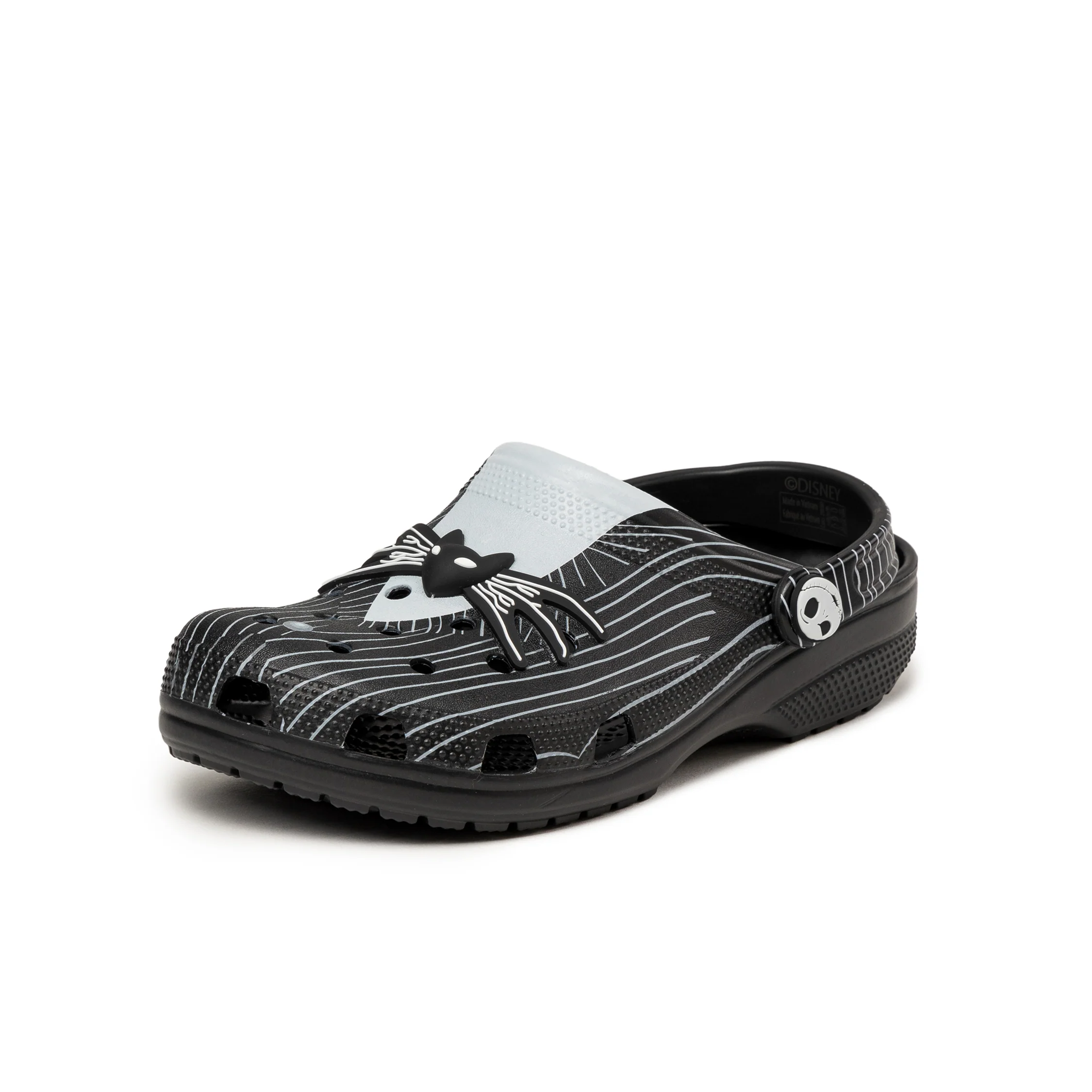 Was ist das? Das ist ein brandneuer Disney Tim Burton's The Nightmare Before Christmas Classic Clog. Inspiriert von Jack Skellingtons Anzug, hat er alle Details - von den Nadelstreifen bis zur fledermausförmigen Fliege. Du kannst sie überall tragen, von Halloween Town bis Christmas Town (und darüber hinaus).